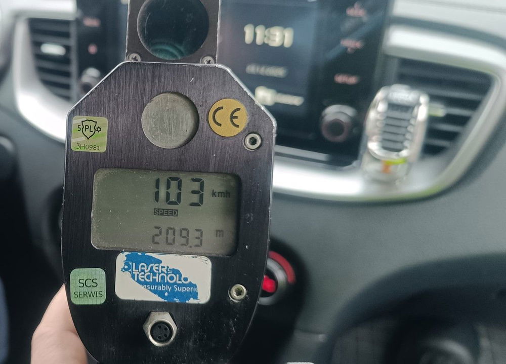 - Zmierzona prędkość: 103 km/h w obszarze zabudowanym