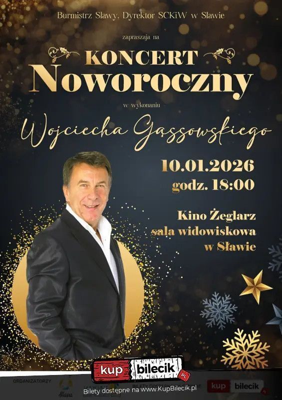 Muzycznie przywitamy Nowy Rok! Burmistrz Sławy oraz Dyrektor Sławskiego Centrum Kultury i Wypoczynku w Sławie zapraszają na Koncert Noworoczny, podczas którego muzycznie wejdziemy w rok 2026. Wydarzenie odbędzie się w sobotę, 11 stycznia 2025 roku, o godzinie 18:00 w Kinie Żeglarz - sali widowiskowej w Sławie. Przed sławską publicznością wystąpi Wojciech Gąssowski - piosenkarz, gitarzysta i kompozytor. W tym wspaniałym ponad godzinnym recitalu dowiemy się "Gdzie się podziały tamte prywatki" i odwiedzimy "Zielone wzgórza nad Soliną".