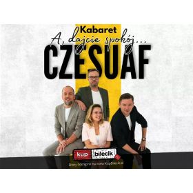bilety: "A, dajcie spokój..." to zdanie pasuje do wszystkiego. To właśnie taką reakcję mamy, gdy słyszymy, co się dzieje na świecie. Tak właśnie mówimy, gdy już ręce opadają. "A, dajcie spokój..." czyli nowy program kabaretu Czesuaf, który powstał z potrzeby serca... i nerwów. Bo jak tu żyć spokojnie, gdy wszystko dookoła aż prosi się o komentarz? My nie wytrzymaliśmy i wy też nie wytrzymacie... ze śmiechu. Nowy program to świeża dawka humoru, ciętej satyry i celnych obserwacji rzeczywistości. Nie zabraknie nowych postaci, zaskakujących point i tematów, które aż proszą się o komentarz w krzywym zwierciadle. Kabaret Czesuaf artyści: Wojciech Kowalczyk, Maciej Morze, Tomasz Nowaczyk, Olga ŁasakKabaret Czesuaf od 2002 r. rozśmiesza widzów w całej Polsce. Przez ten czas grupa stworzyła kilkanaście autorskich programów komediowych, zdobyła nagrody na największych festiwalach kabaretowych i wystąpiła w najważniejszych realizacjach telewizyjnych. Najbardziej rozpoznawalne numery kabaretu to m.in. „Mowa nienawiści”, „Rośliny doniczkowe” i „Ferie w Zakopanem”. Poprzedni program "Skandal!" obejrzały tysiące widzów, mamy nadzieję, że nowe skecze znajdą jeszcze większe rzesze odbiorców. Może nawet miliony Bez przesady! Właśnie taki tytuł nosi nowy program Czesuafów. "Bez przesady!" to próba zmierzenia się z tym, co widzimy dookoła siebie. Bilety do nabycia na: KupBilecik.pl |